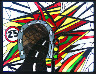 Zamówienie, które złożyła moja dobra znajoma Bronia przyprawiło mnie o niezły ból głowy. Tym bardziej, że czasu nie miałam zbyt wiele. Ale od czego ma się przyjaciół, do tego speców od szkła i światła. Dzięki pomocy Dorotki i Rysia witraż powstał prawie szybko i prawie bezproblemowo :-)